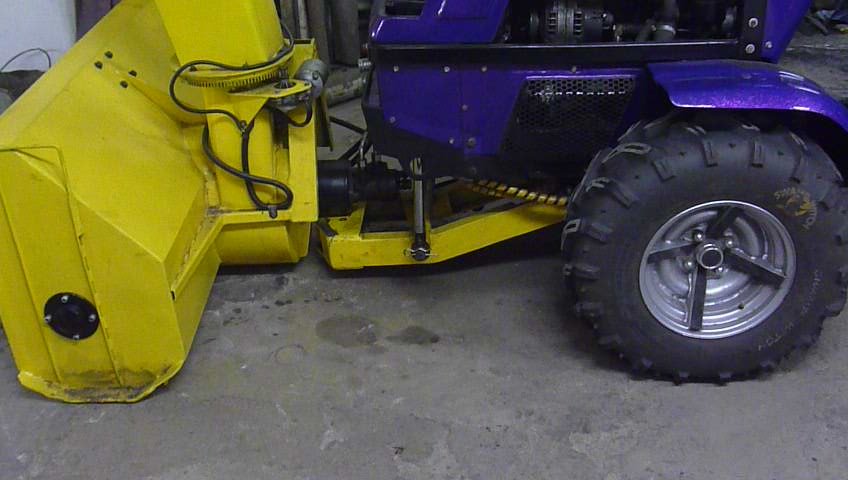 Установка шнекоротора и ковша на переднюю часть трактора.