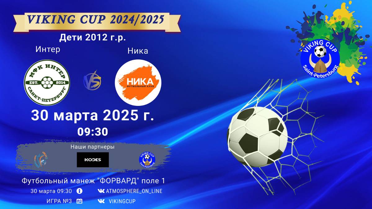 VIKING CUP среди команд 2012 г.р. (U13), Поле 1 30 марта 2025 САНКТ-ПЕТЕРБУРГ, ФЦ "Форвард" ФК "Интер" - ФК "Ника"/VIKING CUP, Игра №3, 30-03-2025 09:30