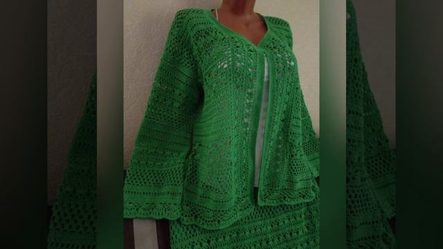 ☘️Костюм женский летний жакет и юбка ,вязаный крючком ☘️