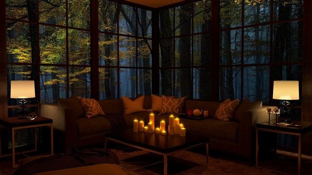 Дождь на окнах уютной гостиной для сна и отдыха. Шум дождя. ASMR