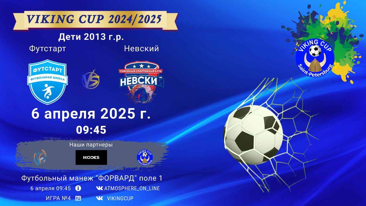 VIKING CUP среди команд 2013 г.р. (U12), Поле 1 6 апреля 2025 САНКТ-ПЕТЕРБУРГ, ФЦ "Форвард" ФК "Футстарт" - ФК "Невский"/VIKING CUP, Игра №4, 06-04-2025 09:45