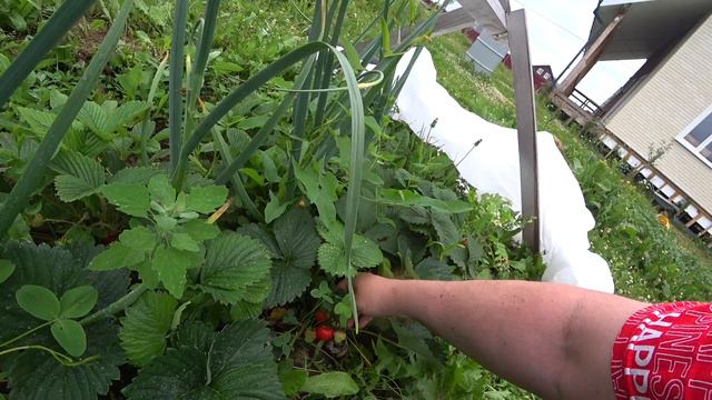 Собираем жимолость, первую клубнику, разбираемся с помидорами.
