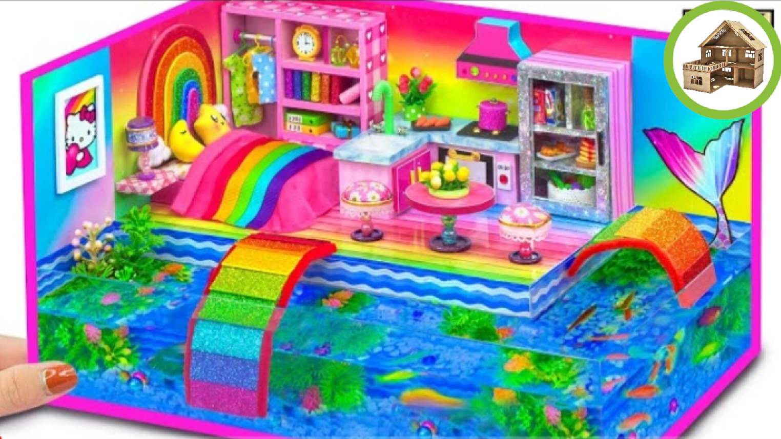 Миниатюрный домик русалки с радужным аквариумом вокруг дома для домашних животных своими руками #29