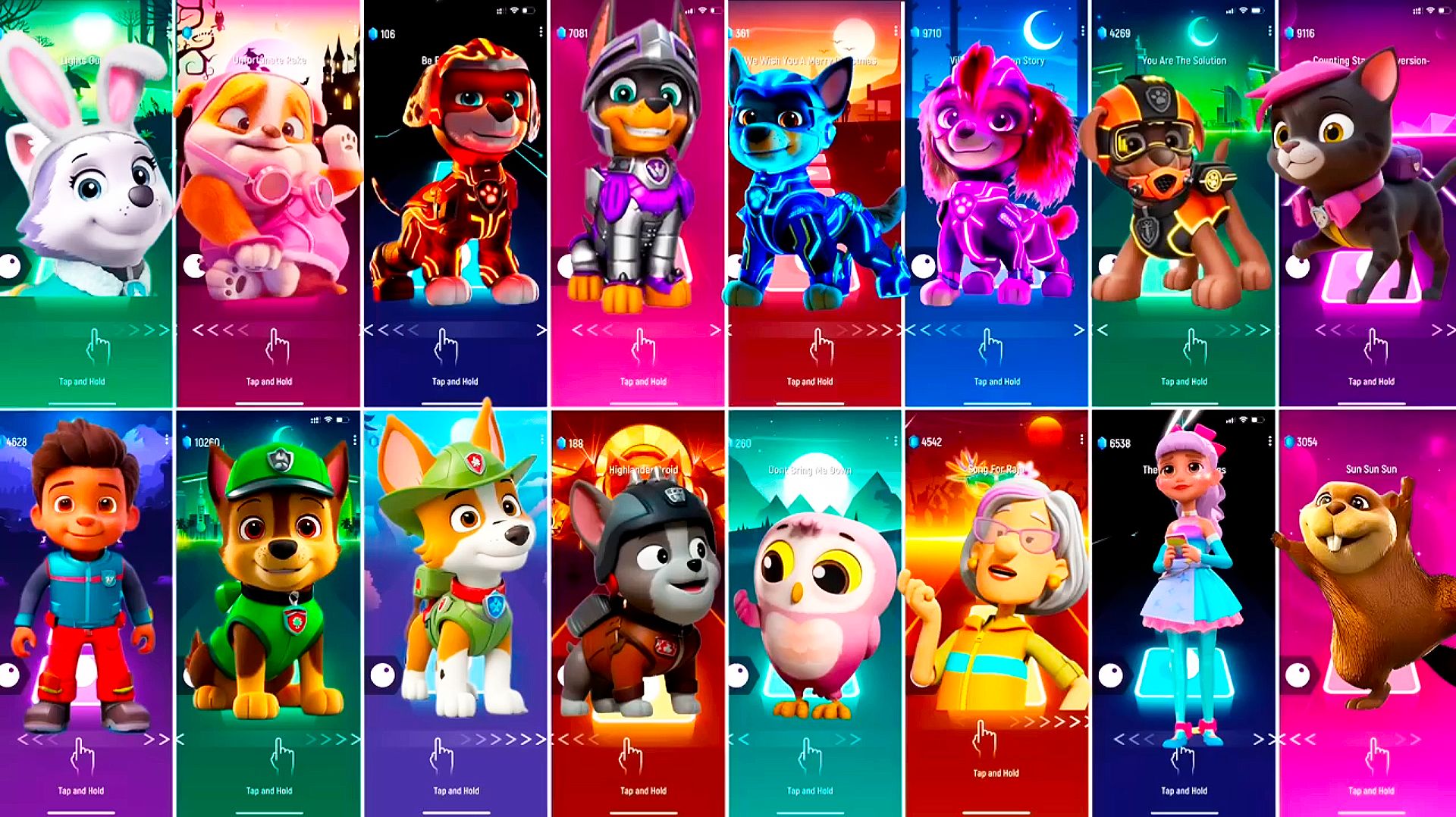 Мультики для Детей Щенячий Патруль Tiles Hop - ЭВЕРЕСТ, КРЕПЫШ, МАРШАЛЛ, ГОНЩИК, СКАЙ, ЗУМА