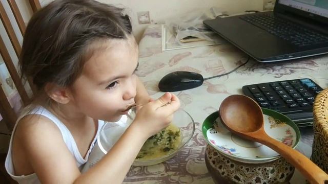 Элине рассказали про суп из крапивы и она мечтала попробовать такой суп. И вот мечты сбываются! 05.05.2025г.