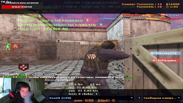 💎 Мой сервер IP: 46.174.50.10:27258💎 🔫 Режим сервер: PUBLIC 🔫 💎сайт сервера cs-free.ru/💎 💻 Группа сервер : https://vk.com/csmast3rs 💻 💥 ВСЕМ ВИП БЕСПЛАТНО 💥 👑 https://www.donationalerts.com/r/snegovikcs 🎮СБОРКА ОТ МЕНЯ Counter-Strike 1.6 by snegovik youtube.exe.. disk.yandex.ru 🎮ПРОДЛИТЬ СТРИМ НА 1ЧАС = 50Р 🎮 🚫ВНИМАНИЕ НА СТРИМЕ ЗАПРЕЩАЕТСЯ🚫 ПИАРИТЬ СЕБЯ (СТРИМ/ВИДЕО/КАНАЛ) ОСКОРБЛЯТЬ ЗРИТЕЛЕЙ НА СТРИМЕ ЗВАТЬ НА ДРУГОЙ СЕРВЕР 🔔СТРИМЫ ПРОХОДЯТ КАЖДЫЙ ДЕНЬ | СУББОТА-ВОСКРЕСЕНЬЕ ОТДЫХ) 🔔 ПРОДЛИТЬ СТРИМ - 50Р ИГРАТЬ 1 НА 1 - 250Р РАССКАЗАТЬ ЖИЗНЕНУЮ ИСТОРИЮ - 250Р ДОБАВИТЬ В ДРУЗЬЯ - 100Р МОДЕРАТОРКА - 150Р ПООБЩАТЬСЯ В ДС - 200Р ВАША МУЗЫКУ НА СТРИМЕ - 50Р ПЕРЕДАТЬ ПРИВЕТ - 50Р ЗАЙТИ И ПОИГРАТЬ НА ЧУЖОМ СЕРВЕРЕ СТОИТ 200 РУБ СПЕТЬ ПЕСНЮ 500 руб ПРИСЕДАНИЕ (25 раз 100 РУБ) (50 раз 300 руб) РЕКЛАМА ВАШЕГО КАНАЛА 500 РУБ ПОЗДРАВИТЬ ВАШИХ РОДНЫХ И БЛИЗКИХ ИЛИ ПРИВЕТ ПЕРЕДАТЬ ПРИКОЛЬНЫМ ПОЗДРАВЛЕНИЕМ ИЛИ СТИХОМ 150 РУБ КС 1.6 ПОМЕНЯТЬ СЕРВЕР ВО ВРЕМЯ ИГРЫ 300 РУБ