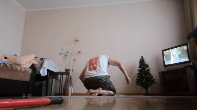 Стоя на голове согнул гвоздь 150 на 5, откусан на 145, голые руки, без магнезии