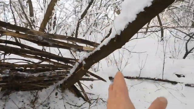 Строю зимний шалаш в лесу для ночёвок и рыбалок!