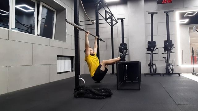 Подтягивания до груди с ногами на тумбе