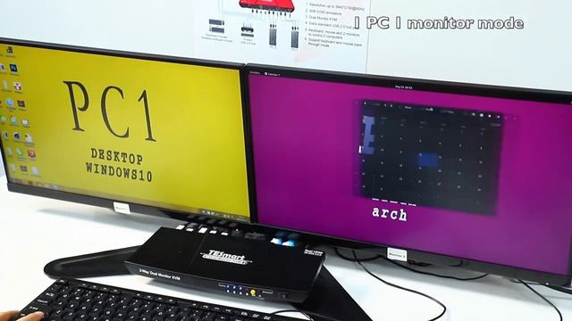 TESmart 2PCs DualMonitor KVMSwitch,How toshare a setof keyboard and mouse for 2 hosts and2 monitors