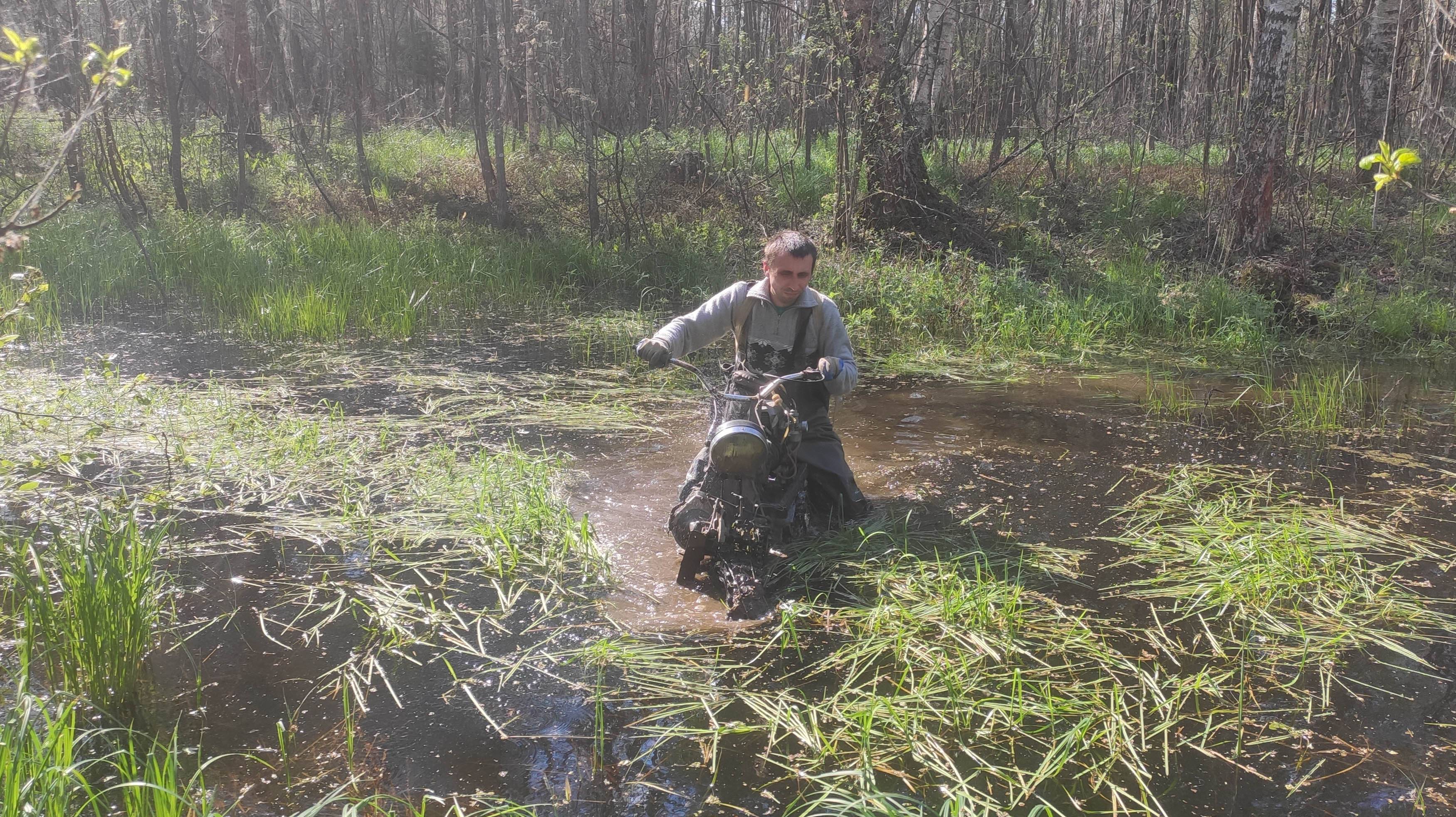 По следам прототипа выбираюсь из болота на полноприводном пиле-мотоцикле