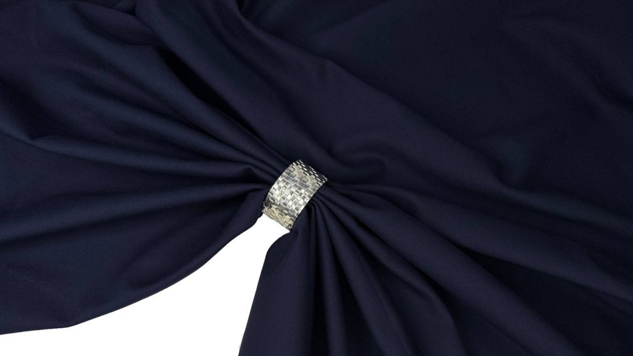 Трикотаж на основе вискозы джерси цвет темно-синий. Легкое полотно приятное к телу. Высокая эластичность. Хорошо держит форму. Закладывается в объемные складки. Хорошо дышит за счет высокого содержания вискозы. Ширина 155 см. Высокая плотность 450 гр. Смесовый состав: 74 вискоза, 23 нейлон, 3 эластан. Что шить: жилеты, жакеты, юбки, брюки, бомберы. Заказать можно здесь https://ducktex.ru/catalog/tkani/