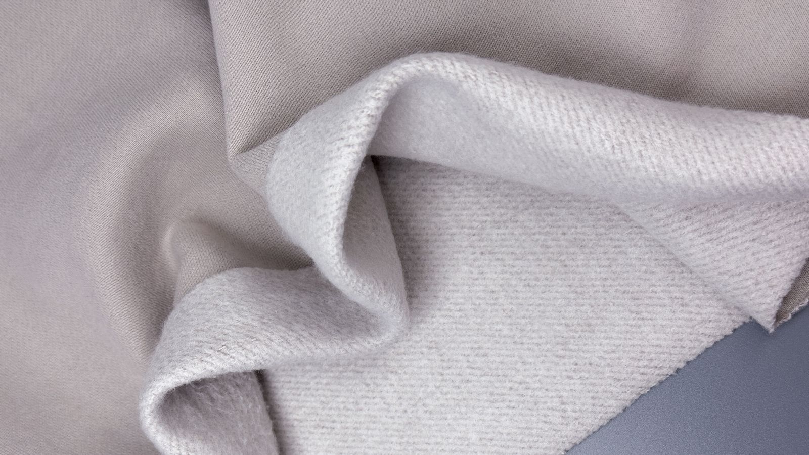 Ткань футер 3-х нитка с велюр эффектом и микроначесом цвет холодный латте плотностью 340 гр. Состав 80% хлопка, 20% полиэстера. Мягкий и теплый материал, который прекрасно держит форму и согреет вас в холодную погоду. Идеален для демисезонного ассортимента. Лицевая сторона с велюр эффектом придает изделиям особый уют. Важно: Не теряет своих свойств после стирок. Микроначес станет менее пушистым, но его теплые качества не станут хуже. Дает усадку до 3%. Особенности ткани: Небольшой мягкий начес на изнанке. Лицевая сторона с мягким велюр эффектом. Ширина полотна 180 см. Качество Компакт Пенье обеспечивает длительную носку без потери формы. Турецкое фабричное качество. Практически не мнется. Что шить: спортивные костюмы, шапки, бомберы, толстовки, штаны, жилетки.