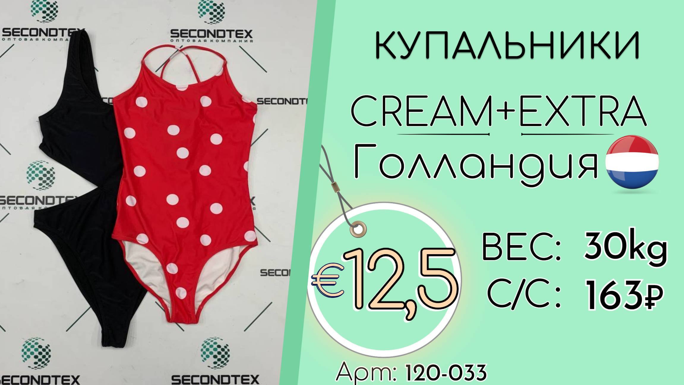 Страна: Голландия Вес мешка: 30 кг Цена за кг: Евро 12,5 / Рубли 1 175 Цена за мешок: 35 250 руб. Себестоимость одной вещи: 163 руб. Кол-во штук: 216 шт. ____ 💰 Курс на дату съемки (04.04.2025): €1 = 94 Руб. (при наличных и безналичных платежах) 💳 €1 = 94 Руб. (при безналичной форме оплаты на р/с) Связаться с нами: +7(916)779-79-79 (WhatsApp, Telegram) Наш сайт: https://secondtex.ru Instagram: https://instagram.com/secondtex.opt Мы ВКонтакте: https://vk.com/secondtex