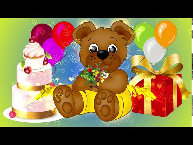 Детский футаж HAPPY BIRTHDAY на обманчивом синем и зелёно-жёлтом фоне с эффектом сердечек