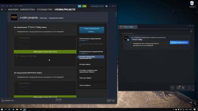 Передача выигранного скина победителю. Чтобы участвовать в розыгрыше, скачивайте мобильное приложение CS:GO Assistant https://play.google.com/store/apps/details?id=robin.vitalij.cs_go_assistant Наш сайт — https://robinlabs.ru Наши другие приложения — https://play.google.com/store/apps/dev?id=7466802141263441397 #csgo #winner #steam