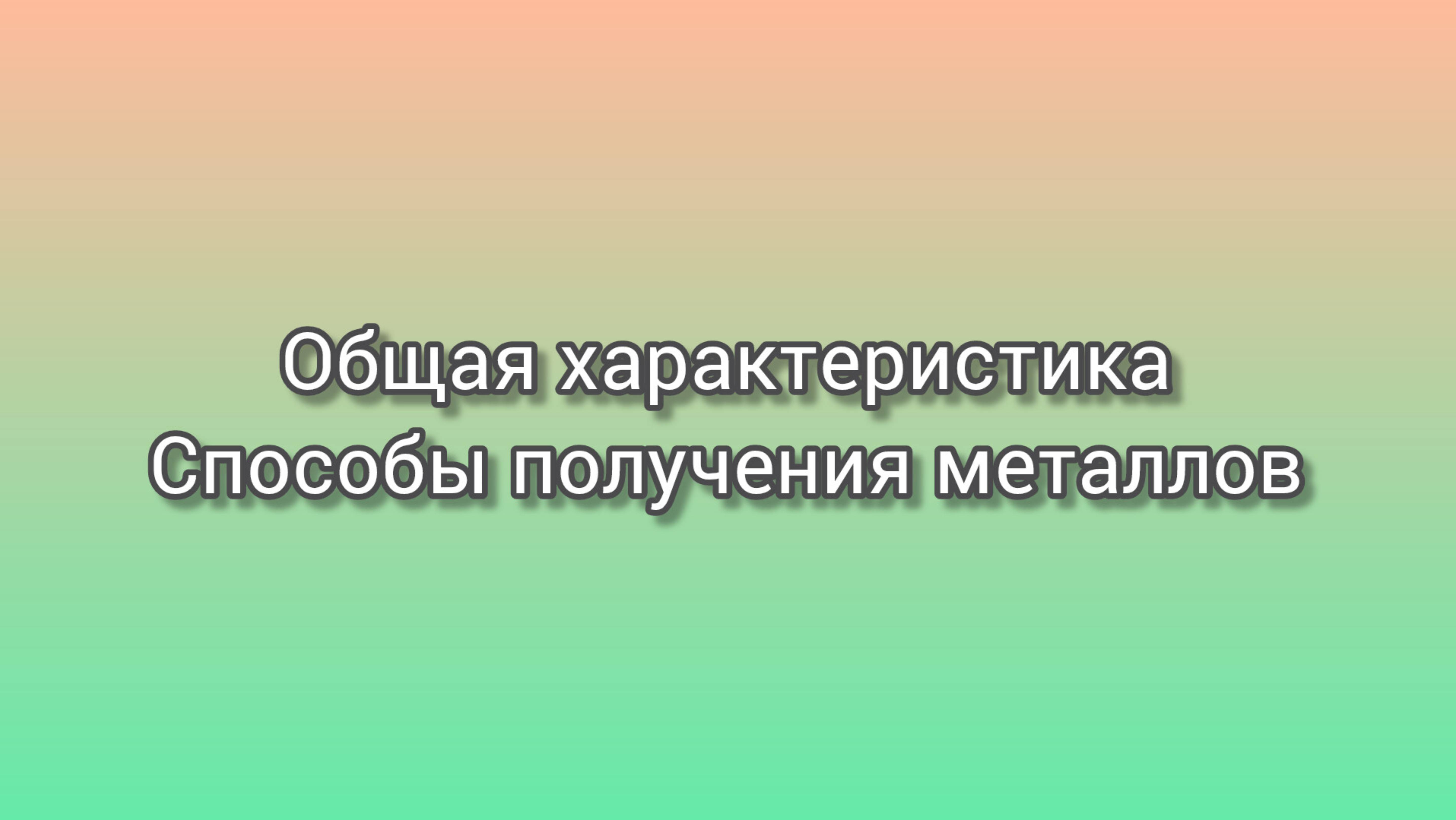 Общая характеристика и способы получения металлов