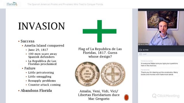 Two hundred years ago, in the summer of 1817, a group of pirates and privateers invaded Amelia Island, Florida, then still a Spanish colony, in hopes of striking a blow for the Spanish American Revolutions. The presentation will tell the stories of these revolutionary rogues and their leaders, how they planned to free Florida from Spanish rule, and how the United States intervened to stop them. This event is funded by the Florida Humanities Florida Talks: At Home! program.