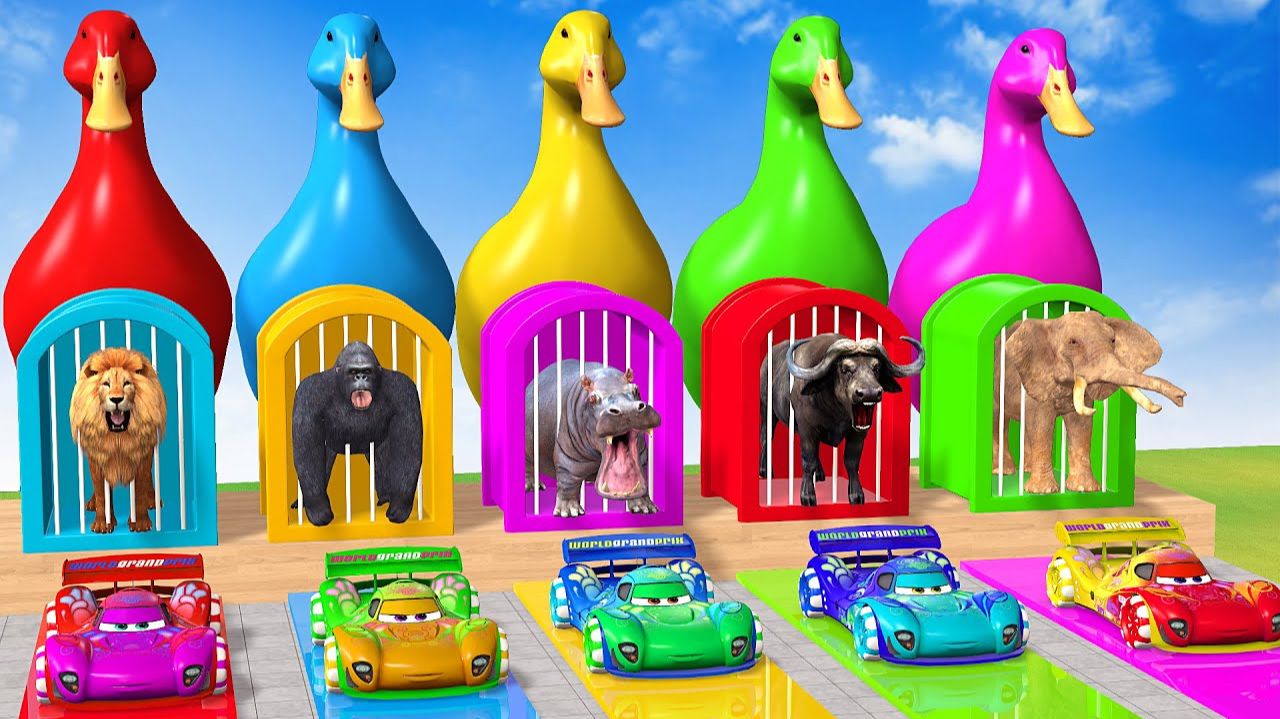 Веселые игры с слоном, гориллой, бегемотом, тигром - 3D игра с животными - Забавные 3D животные