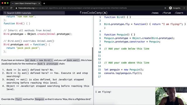In this object oriented programming tutorial we override inherited methods. This video constitutes one part of many where I cover the FreeCodeCamp (www.freecodecamp.org) curriculum. My goal with these videos is to support early stage programmers to learn more quickly and understand the coursework more deeply. Enjoy!