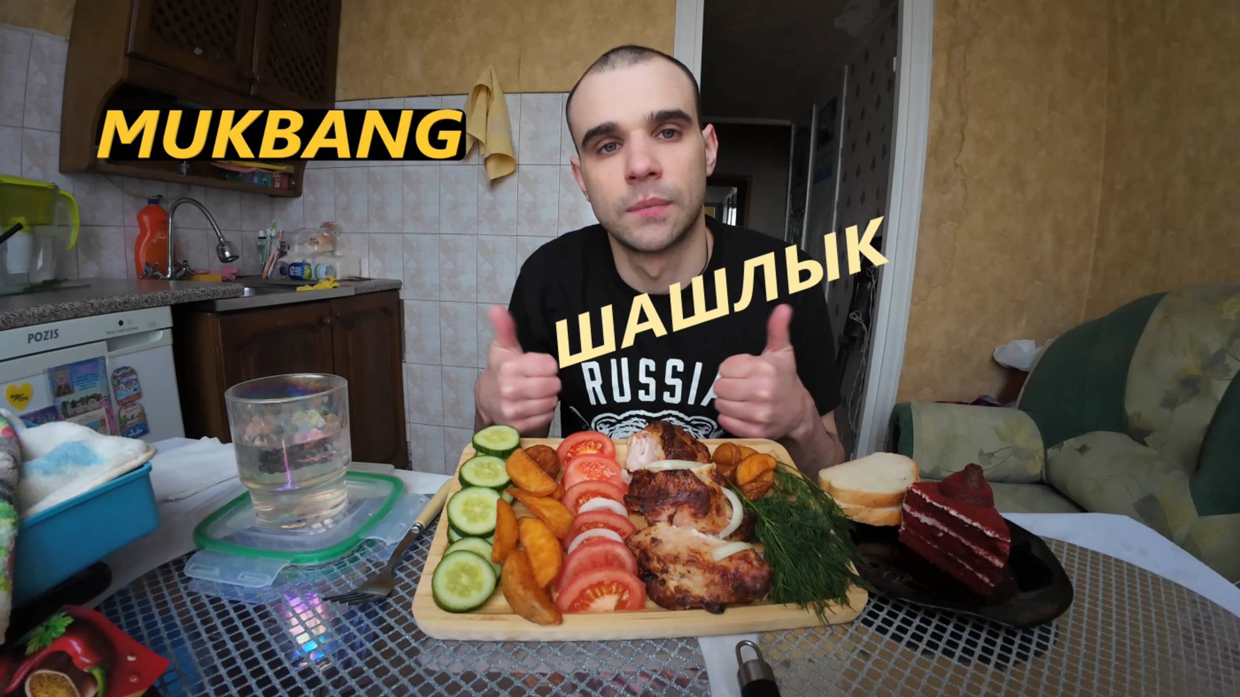 МУКБАНГ ШАШЛЫК СВИНИНА / КАРТОФЕЛЬ ЗАПЕЧЕНЫЙ / ОВОЩИ / ТОРТ КРАСНЫЙ БАРХАТ/ EATING MUKBANG ASMR АСМР ПОДДЕРЖАТЬ КАНАЛ - 2200 7009 3768 4693