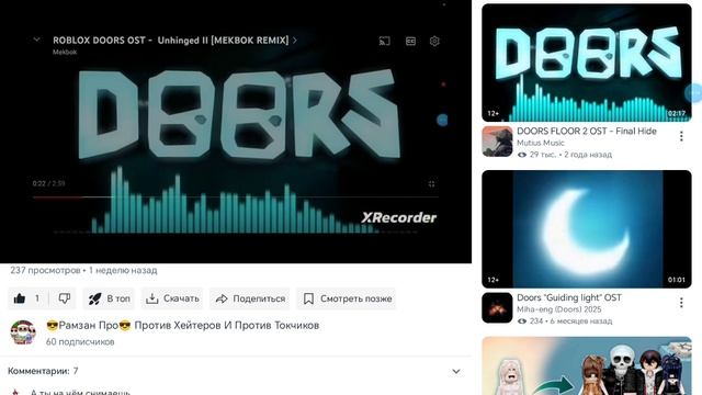 237 просмотров 🥳 по видео: песня про doors или по дорс